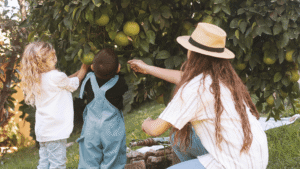 Adult and Children Picking Fruit